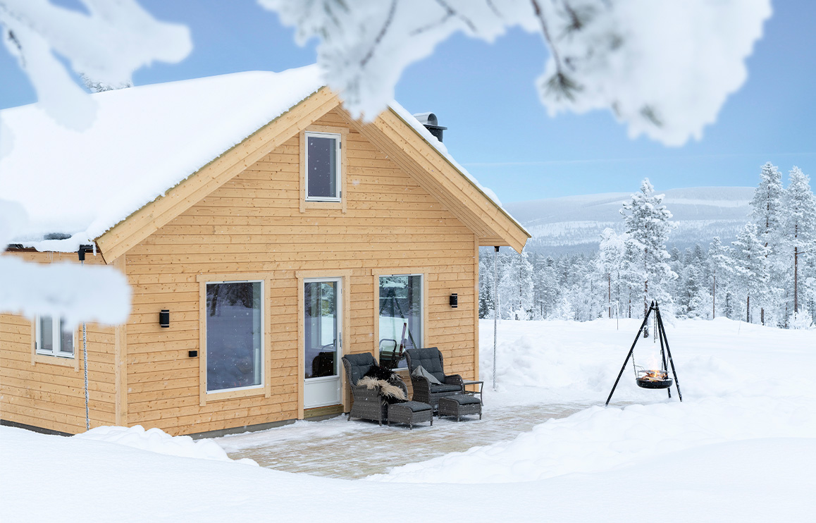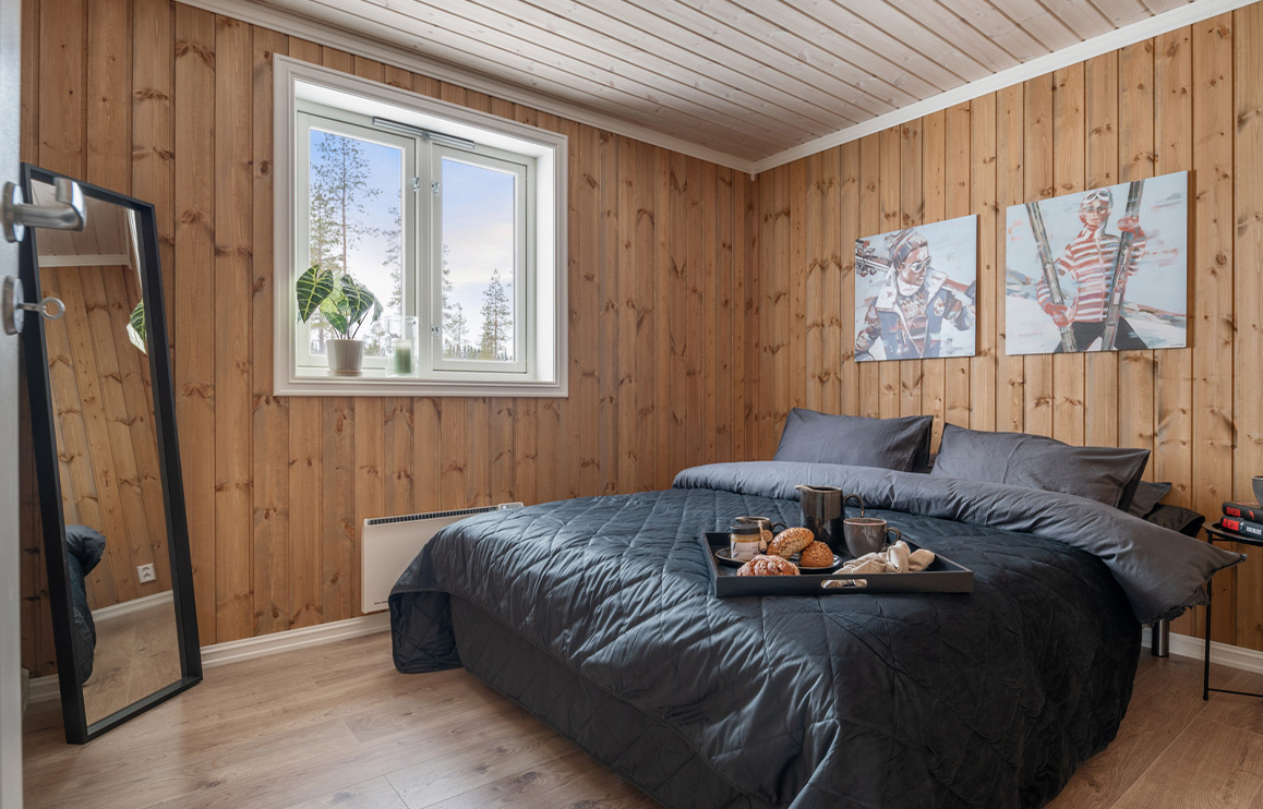 Gjennom vår samarbeidspartner kan vi sette opp en gedigen tømmerhytte med 6 soverom og 3 bad.